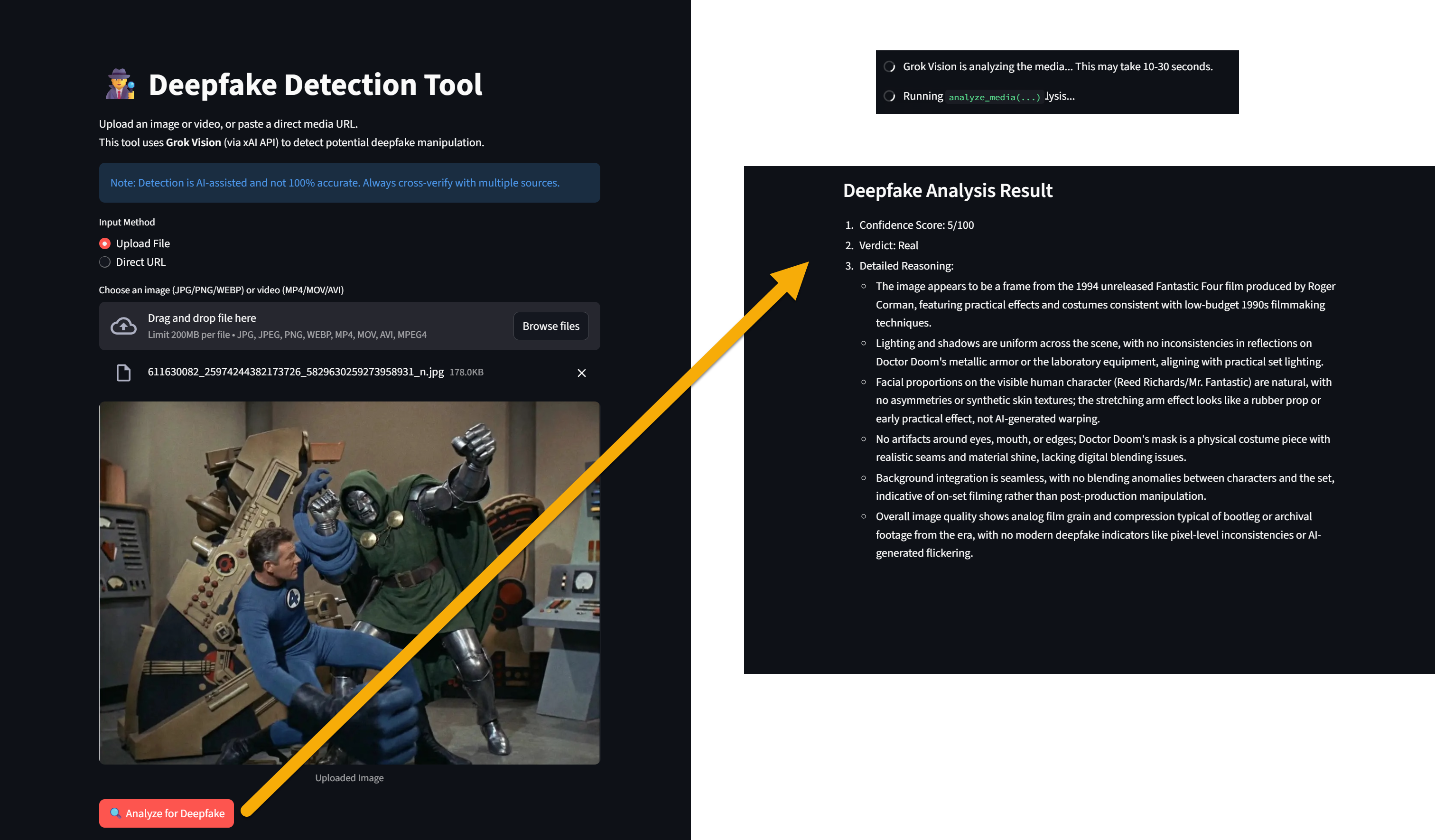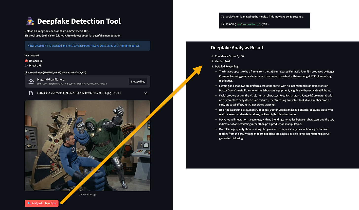 Introducing My Deepfake Detection Tool: Spotting AI-Generated Fakes with Grok Vision