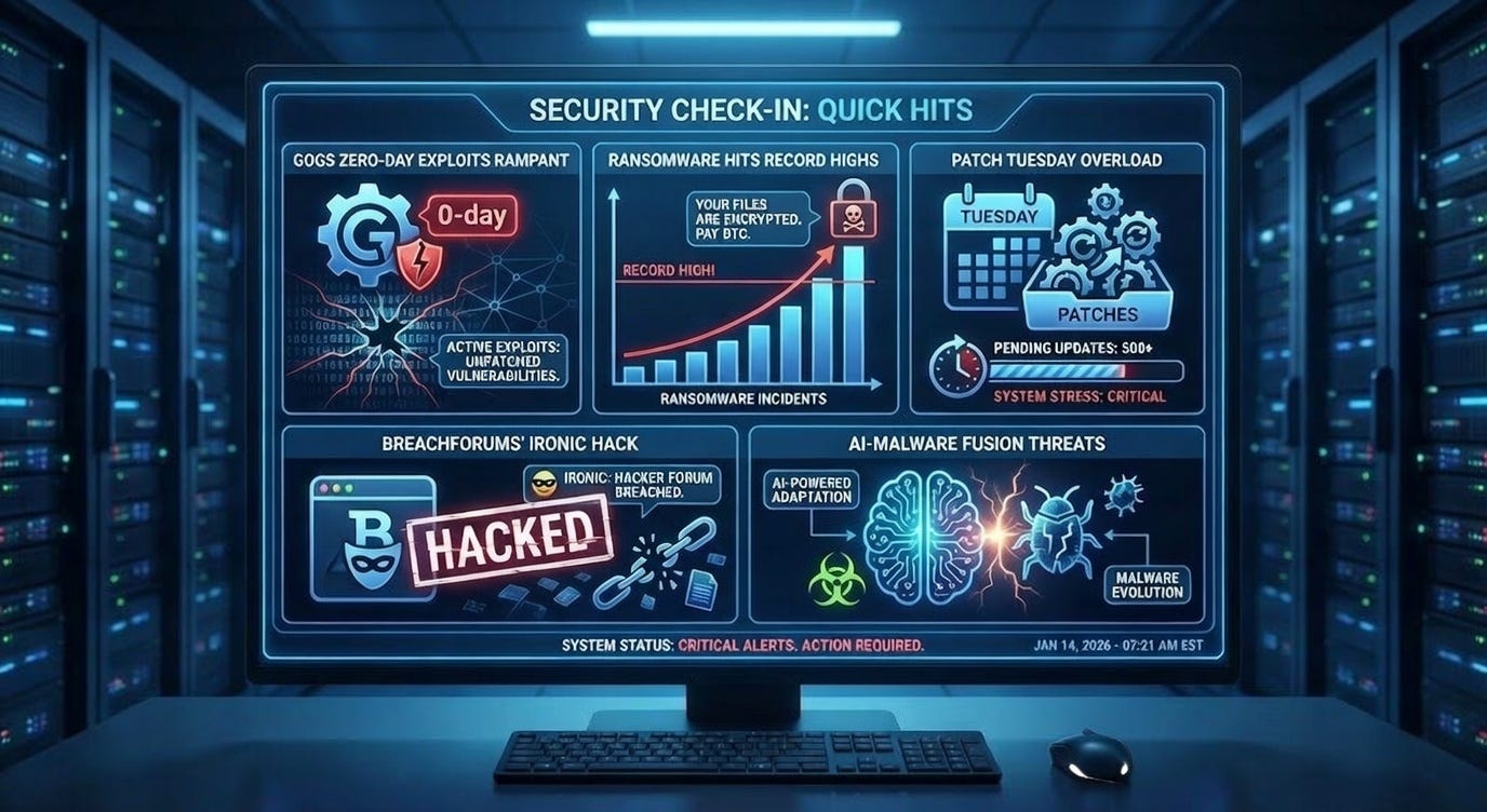 Security Check-in Quick Hits: Gogs Zero-Day Exploits Rampant, Ransomware Hits Record Highs, Patch Tuesday Overload, BreachForums' Ironic Hack, and AI-Malware Fusion Threats